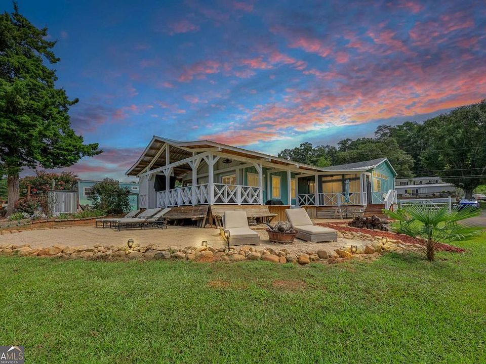 ATTN: Price Adjustment and Seller concession equal to two years of the monthly HOA fees is being offered, so get ready to enjoy lake living. Tucked along the shores of Lake Lanier, this home offers unobstructed views of the water, providing a perfect escape into nature's beauty. This recently updated mobile home is conveniently located just minutes from major thoroughfares, I-985, and Hwy 365. This property also provides easy access to a variety of amenities, including the North Georgia mountains, downtown Gainesville, several shopping centers, recreational parks, and Northeast Georgia Medical Center. Prepare to be captivated by this move-in-ready residence, boasting an array of recent upgrades. Discover the charm of shiplap and wood finishes, updated flooring, and an open concept dining room and kitchen in this revitalized 2005 Horton home. This property features a bright, farmhouse-style kitchen with stainless steel appliances, a stainless farmhouse sink, open shelving, butcher block countertops, and an island with seating. The walk-in pantry and laundry room are easily accessible from the kitchen. The living room provides plenty of daylight and wonderful views of Lake Lanier. The primary bedroom offers privacy in this split bedroom floor plan with cedar-lined closets and a full bath with a shower/tub combination. Two additional bedrooms share the second full bath with a single vanity and a shower/tub combination. Now, take a few steps outside to discover a perfect place for relaxing and entertaining. Plenty of room on the expansive decks for family and friends, an outdoor cooking station with a functional sink/prep area, and a delightful sandy beach just off the back, where you can relax and take in the sunsets. Situated within Lake Lanier Mobile Home Community on a leased lot with rental restrictions in place, this home offers a prime location with unbelievable views of Lake Lanier that are hard to beat! Shown by Appointment Only. Please do not access the property without prior approval.