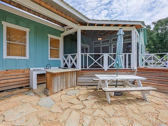 Sandy beachBright farmhouse-style kitchenIsland with seatingStainless steel appliancesWalk-in pantryCedar-lined closetsButcher block countertops