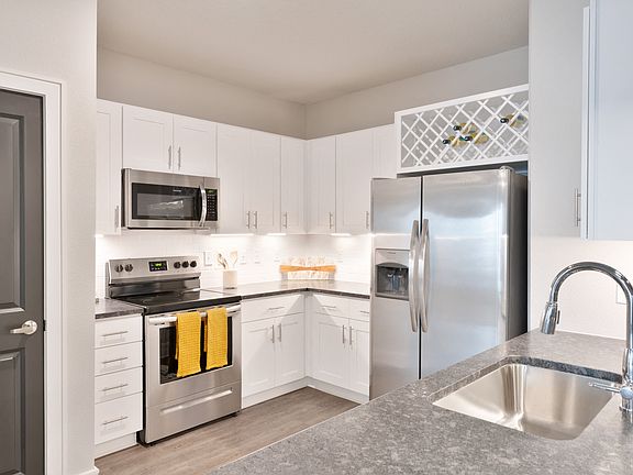- Exterior features: , 12' Ceilings in Select Homes, 9' Lofty Ceilings, Balcony, Bike Repair & Storage Room, Coffee & Hot Tea Bar, Conference Room, Corridor Attached Garages in Select Homes, Custom Shaker-Style Cabinetry with Wine Rack, Cyber Cafe, Designer Tile Backsplash in Kitchen, Dog Wash, Elevators, Framed Vanity Mirrors, Granite Countertops in Bathroom, Granite Countertops in Kitchen, Home Intrusion Alarms with Optional Monitoring, Indoor & Outdoor Leisure Spaces, Indoor Trash Chutes, Modern Pendant Lighting, Online Rent Payment, Package Receiving, Pet Park, Soaking Tub in Select Homes, Stainless Steel Appliances, TV Lounge, Theater, Two Guest Suites, Two-Tone Paint Scheme, Upscale Wood-Finish Flooring