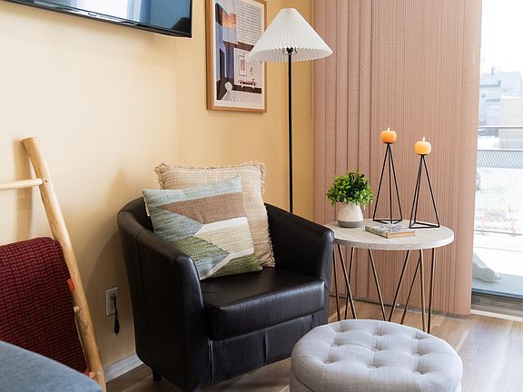 Laundry is located just outside the unit door for your convenience. Utilities included in monthly rent. Not accepting long term leases.