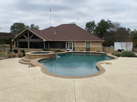 7.66 beautiful acres and 2 fabulous homes-3/2 is 2128 sq.ft. and 2/1.5 is 1863 sq.ft with an inground pool and hot tub, pool side seating, giant 4 stall detached garage/office/store room plus each home has 1 car garage attached. Granite throughout, large rooms, sanctuary bathrooms, walk in closets, high ceilings, enclosed patio/porch on each. Humming bird exemption, RV site with full utilities, laundry room, work area and storage, well and septic, additional large septic used for additional housing previously on site. Satellite irrigation system, electric coded gate, cleared land with room to grow. Just minutes from downtown Burnet and 15 minutes to Marble Falls. 1f5 minutes to Lake Buchanan. This home is perfect and very much loved. Buyer to verify all sqare footages and restrictions.