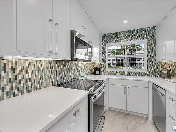 Experience the best of Naples living in this freshly remodeled, move-in-ready Harbour Cove residence, boasting over $265K in renovations and offered turnkey with modern furnishings and décor. The sleek GE Profile kitchen is fully equipped, complementing the coastal charm of this inviting home. Enjoy serene sunrise views over Outer Doctors Bay, where dolphins often play, and take advantage of resort-style amenities including a heated bayside pool, Chickie hut with shaded dining, boat slips (accommodating up to a 34' vessel), kayak launch, and fishing station just ¼ mile north of Doctors Pass. Beach access is a short stroll away, with Venetian Village within walking distance and downtown Naples just minutes by bike or car. Featuring in-unit laundry, first-floor walkout convenience, on-site management, and a friendly 68-unit community known for its active social scene, this is your perfect slice of coastal paradise at Harbour Cove.