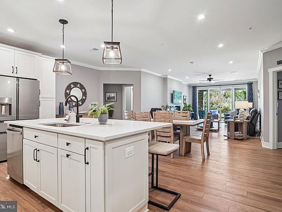 Love Where You Live! Experience resort-style living that blends comfort, luxury, and convenience—just steps from the waterfront. Enjoy peaceful mornings without the disruption of construction nearby. This highly sought-after first-floor condo is move-in ready and has been meticulously maintained, featuring numerous upgrades throughout. Step inside to an open, light-filled layout enhanced by crown molding, recessed lighting, and direct views of the lush greenspace with seasonal water glimpses. The gourmet kitchen and dining area are ideal for entertaining, offering a spacious island with seating, quartz countertops/bar, sleek wifi enabled appliances, and seamless flow into the living room. Unwind by the cozy fireplace or open the double sliding glass doors to your private patio—perfect for watching the sunrise, morning coffee, reading, or simply enjoying the peaceful natural setting. The owner’s suite offers both a walk-in and secondary closet, private patio access, and a luxurious en-suite bath with dual sinks and a spa-inspired frameless glass shower. The guest suite is bright and spacious, complete with its own en-suite bath, custom tilework, and large vanity. A bonus room with upgraded frosted glass doors provides the perfect space for a home office, workout area, or reading nook. Additional highlights include: LVP flooring throughout the entire home, interior access to a private one-car garage, and a secure storage unit. From your patio, take a stroll along the walking trail where you can take in the sights and sounds of nature to discover tranquil views and your kayak launch. The community also has direct access to the Kent Island Cross Island Trail. Many extra amenities to enjoy including: indoor heated pool, outdoor infinity pool, firepits, pickleball and tennis courts, dog park, and beautiful walking and biking trails. Live every day like you’re on vacation—this stunning condo offers the lifestyle you’ve been waiting for and is a must see to experience all of the upgrades!