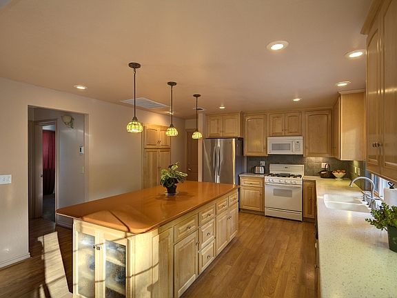 This great home has been nicely updated. It has a new roof, newer bright and cheerful country kitchen with a huge dining/gathering area that leads to the large private patio. The kitchen features natural maple wood cabinets, an 8x4 center island and tons of storage. The Formal living room has a fireplace and a lovely view of the beautiful front yard. Both bathrooms were just remodeled. There is an abundance of storage. The master bedroom has large frame-less walk-in shower with dual vanity and beautiful mirrors. The hall bath has a single vanity, new cast iron tub and both bathrooms have natural maple wood cabinets and quartz counter tops. All of the bedrooms have large closets with built in organizers. The 2 car garage has been converted to a bonus room. Outside there is a great patio for entertaining and a Jacuzzi hot tub for relaxing. There is a great shop/storage/gardening building that is can be utilized when you are planting the 4 raised garden beds. This property is dotted with several oaks and provides the new owner a lot of possibilities! There is also room for you to park your TOYS.