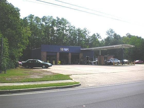 Great Commercial Site! Metal roof, apartment or office above. Storage area,.76 acre lot, 3 large bays and 1 small bay in rear (240 sq. ft.). Lot size 151x213x174x187. Front canopy. Tools and business sold separately. For all $260,000. Agent related to owner.