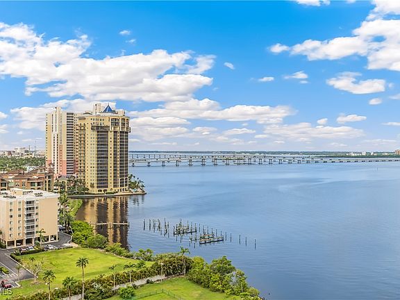 TWO TERRACES To Watch The SUNSET AND THE SUNRISE Over The Caloosahatchee River! The View Is Priceless From this Modern 15th Floor Condo! Big City Vibe In The More Relaxed But Vibrant Downtown Fort Myers District! FLOOR-TO-CEILING IMPACT RESISTANT Windows And Sliders Bring In Plenty Of NATURAL LIGHT And That Incredible Water View! And Who Said High-Rise Living Had To Be Small? This Is An 1800 SF, 3 Bed+Den, 2.5 Bath Condo Luxuriously Finished With Sleek Wood Cabinets, Upgraded Appliances (NEW FRIDGE), A Pantry, And Generous Counterspace In The Kitchen. COASTAL Touches In The Bedrooms And Baths Remind You That You Are A Short Drive To The Beach! The Master Bath Features A Walk-In Shower With FRAMELESS GLASS DOOR And A JETTED Tub With Those Same Amazing Views! A Second Well-Appointed Bath Serves Overnight Guests And A Half Bath Serves Dinner Guests. Park In Your Designated Space In The Parking Garage Near The Elevators With Easy Access To The Elevator. The Building Features A Fitness Center With More Of That Fabulous River View, A Billiard Room, A Library, And A Stunning Pool Again Overlooking The View. Hop The Free Trolley To Enjoy A Night Out In DownTown Fort Myers. If You Also Love Boating, You Will Appreciate The BOAT RAMP Located Right Beside The Community. The Association Fee Includes Basic Cable And Internet, And The Reserve Funds Are FULLY FUNDED Per The Association. Come Live The Life You Have Always Wanted To Live! Schedule A Personal Tour Today!