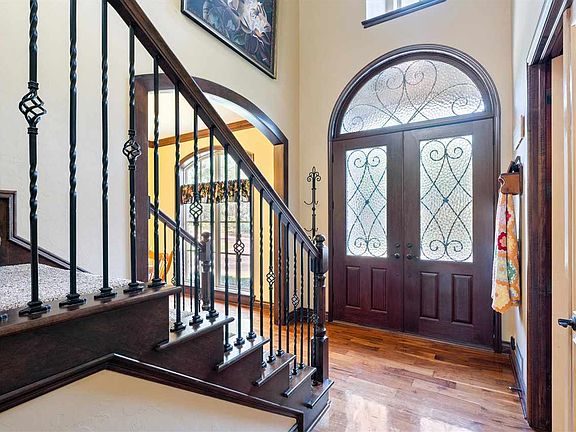 Come discover this lovely estate in Southwest Stillwater, privately tucked away on over 3 acres boasting more than 4200 sq. ft. of luxury living. The perfect mix of stylish comfort and quality construction, this Greg Avery Home offers living space for everyone: a private in-home study, formal and casual dining, a spacious kitchen, 4 ensuite bedrooms, playroom/library, a bonus/flex room, 3-car garage and extensive outdoor dining and entertainment options. The private circular drive leads you to a majestic double door entry boasting a 2-story foyer and spiraling staircase all flanked by a in-home office with stylish French doors and formal dining area filled with natural light. From the moment you walk-in you’ll appreciate the touches that make this home special - arched doorways, solid hardwood flooring, wood wrapped expansive windows, wood trim craftmanship and soaring ceilings. The living room features a stately woodburning stone fireplace, neutral colors and open, easy flow to the kitchen and casual dining. The kitchen offers space for all the cooks with large center island with prep sink, double ovens, gas cooktop and true exhaust hood, plenty of counter space and walk-in pantry. This floor plan is perfect for a large family or multi-generational living with 2 ensuite bedrooms located on the first floor. The primary bedroom continues the style of the home with wood flooring, private patio access, bay window sitting alcove, and spa-like bath area with double vanities, walk-in shower, corner garden soaker tub, and roomy walk-in closet with built in cabinetry and shelving. On the other side of the home, a second suite offers privacy and convenient garage access. A stylish half bath and oversized laundry room complete the thoughtful first floor living area. The second floor meets all the needs of a large family or lots of overnight guests with two more ensuite bedrooms, a terrific space for a playroom or children’s library, and a large flex room perfect for a dance studio or fitness room. But there’s more. Outdoor living space is abundant and adaptable with a large fenced backyard, extensive patio and deck space plus expanded seating and decking surrounding an enjoyable firepit. The pull through, porte-cochere style 3-car garage offers abundant parking. The 3rd car garage would make a terrific workshop too with climate control unit and pre-wired for future whole-house generator installation. This home has all the expected features and upgrades including a brand new roof of high impact shingles for lower insurance rates, interior access storm shelter, sprinkler system, 3 HVAC units, 3 newer hot water tanks, and multiple walk-out attic access points for lots of storage. Just in time for Fall it’s time to enjoy the privacy, style and terrific location of this exquisite home just minutes from Stillwater Schools, OSU, Stillwater Medical and the growing Downtown Stillwater Shopping District.
