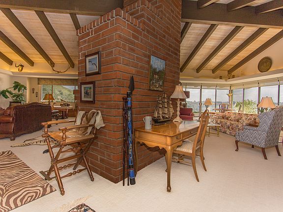 The ONLY available estate in Fallbrook on over 12 acres of land and more than 5300 sq.ft. living space at a REDUCED price. Magnificent 360 degree panoramic views of the hills and valley of Fallbrook located among some of the regions finest homes. Approx. 600 income producing Avocado trees on the property. The home features 3 bedrooms, 4 bathrooms, a loft, basement and oversized 4 car garage. Spacious family and living room with 2 fireplaces rising up to the open beam ceiling .The updated kitchen with granite island, recessed lighting, tile counters, double oven, a walk in pantry offers a stunning view. Master bedroom with high vaulted ceilings and fireplace has 2 walk in closets and a huge bathroom overlooking the Santa Margarita River Valley. Off the master suite is an enclosed patio perfect for an exercise room. A second master suite offers a private bath with walk in closet. A stairway leading up to the loft that could be a library, home office or playroom. The 1000 sq.ft. patio with cover in the center of the home offers privacy and enough space for entertaining and stunning views. The basement offers tons of extra space for storage and hobby.