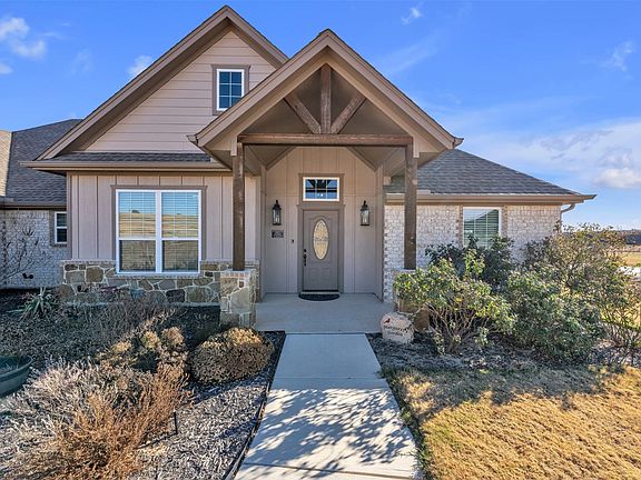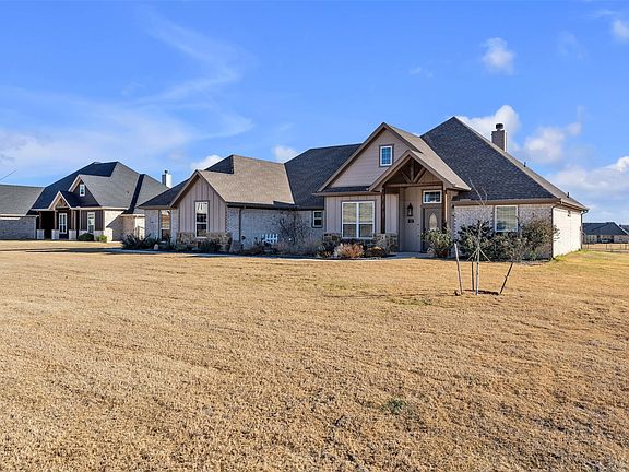 This inviting 3 bedroom, 2 bath open-concept home offers the perfect blend of comfort, functionality, and country charm. The thoughtfully designed kitchen will delight the home chef, featuring custom built cabinetry, a center island with seating, walk-in pantry, and stainless steel appliances including range, microwave, and dishwasher. The owner’s retreat provides a peaceful escape with a spacious walk-in closet, custom cabinetry with dual sinks, a walk-in shower, and a separate garden tub. Tile flooring flows throughout the main living areas, with carpeted bedrooms adding warmth and comfort. Just off the foyer, a versatile flex space offers endless possibilities as a home office, study, or craft room. Step outside to the covered back patio, complete with a wood-burning fireplace—ideal for entertaining, watching the big game, or simply relaxing and enjoying the surrounding countryside. Additional highlights include a sprinkler system, water filtration system, and a generator plug, offering convenience, efficiency, and peace of mind. Whether hosting gatherings, working from home, or savoring the peaceful sights and sounds of country living, this cheerful home offers a lifestyle you’ll be proud to call your own.