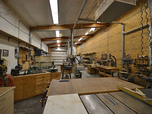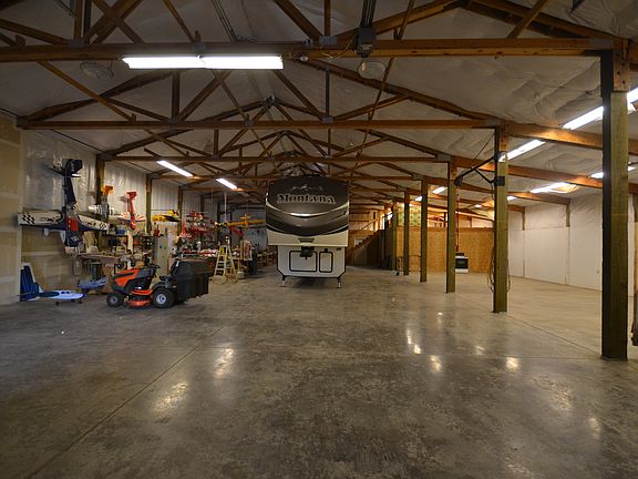 Stunning two level farmhouse surrounded by 5.4 acres of beautiful landscaping! Property includes an oversized 9,600 sq ft heated shop w concrete floors, 600 sq ft office & backup generator - Perfect for running a business from home! Kitchen boasts custom cabinets & top of the line LG appliances. Master bedroom complete w/ walk-in closet & hardwood floors. Enjoy the covered wrap around patio year round and fruit from the orchard trees!