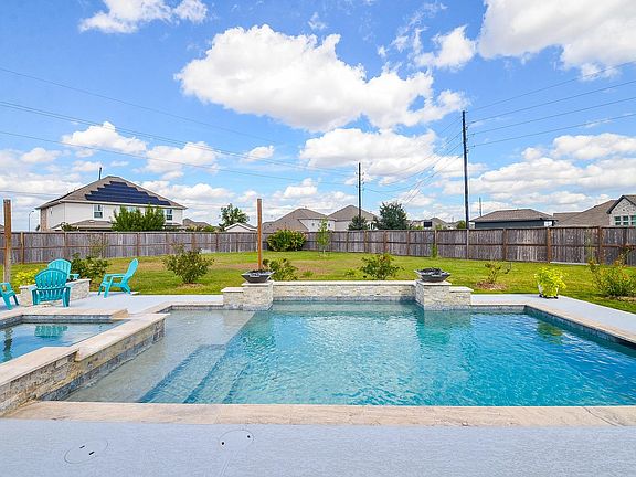 Outdoors, enjoy nearly a quarter acre of pure luxury—featuring a modern pool with fire bowls, a relaxing spa, huge deck, fire pit, and lush landscaping. Upgrades include custom cabinets, shutters, designer paint, epoxy garage floors, whole-house water filter, generator, washer, dryer, refrigerator, and luxury vinyl flooring—no carpet! A 3-car tandem garage, abundant storage, & ceiling fans throughout complete this exceptional home