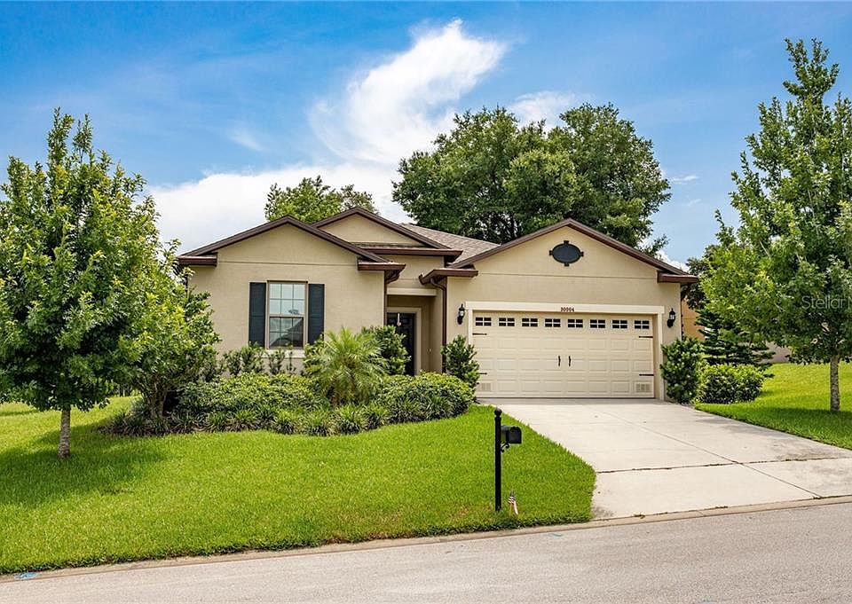 BEAUTIFUL, UPDATED & MOVE-IN READY 3BR/2BA home in sought- after Sullivan Ranch with its bucolic setting & rolling hills, in lovely, serene Mt Dora! You'll love the NEW LAMINATE WOOD FLOORS in the Living Areas and Master bedroom, as well as the VOLUME CEILINGS & open floor plan! Lovely kitchen overlooks the living area, a dinette area & breakfast bar! The living room/dining rm combo is ideal for entertaining & overlooks the spacious, fully-fenced back yard. The master bedroom has a spacious walk-in closet (11x5) & large master bath (11x8) with dual sinks, a garden tub & separate shower. Some additional upgrades include: gorgeous sliding barn door in main hallway, beadboard paneling in hall bath and kitchen island, upper and lower cabinets in laundry room and upgraded kitchen back splash and faucet. This home also features spacious garage w/ a beautifully designed wood wall and painted floors. Sullivan Ranch is a gated family-friendly community with fabulous amenities...a Jr Olympic sized pool, fitness center, club house, walking/biking trails, picturesque pond, doggie park & a playground & splash pad! Just minutes to the brand new 453 extension to the 429 expressway making it easy to commute to Maitland/Winter Park/Downtown Orlando & the Airport! Less than 10 min to Downtown Mt. Dora where there are activities and events almost every weekend You may never want to leave home if you settle here!