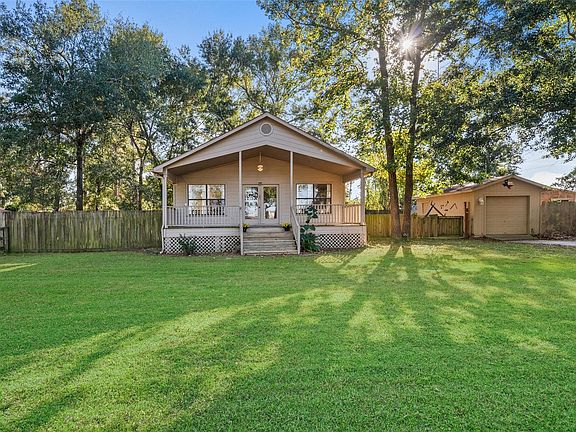 This charming 2-bed, 1-bath home on a spacious cul-de-sac lot with mature trees has endless potential. The open layout features a large living area open to the kitchen and breakfast room, framed by walls of windows and raised ceilings that make the 1,036 sq ft feel expansive, light and bright. Recent updates include a full-house generator & propane tank (2024), HVAC, leaf gutter system, water heater, washer/dryer, refrigerator, and stove in the last 3-5 years. Enjoy the large covered front porch in the mornings with a cup of coffee or in the evening with a beverage of choice. There is a side ramp for wheelchair access, and detached garage with opener perfect for all your lawn equipment. The huge backyard offers room to relax, entertain or garden. No HOA, no MUD tax! Located near major roads and everyday amenities. Bring your vision and with some updating, this home could be truly spectacular. A peaceful country setting just minutes from Tomball and Magnolia. Washer/Dryer/Fridge stays!