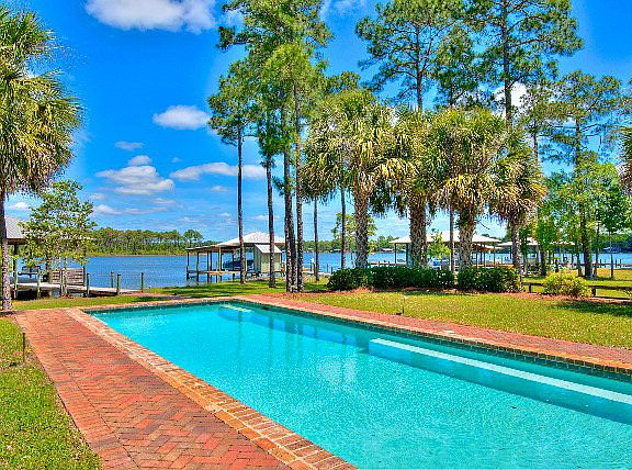 You must witness for yourself the gorgeous views of Spring Branch Creek from this amazing Pete Vallas design! This private 4 bedroom, 4 & 1/2 bath home also features a bonus room and roomy guest quarters above your 2 car garage. This home offers character galore from the antique heart pine floors to the Alabama white marble countertops and custom Cypress kitchen cabinets. Other noteworthy features include: Shiplap interior walls, vaulted ceilings with solid wood structural beams, mahogany exterior doors, wood burning fireplace, alarm system, large screened porches, irrigation system on well, concrete board exterior, metal roof & so much more. You may choose to relax on your screened porch, take a swim in your very own pool or kayak from your shoreline. If you are in a more adventurous mood, take a walk onto your private pier with covered boathouse, already equipped with lift in place! You can hop in your boat for quick access to Palmetto Creek, Perdido Bay or be in the Gulf in no time!