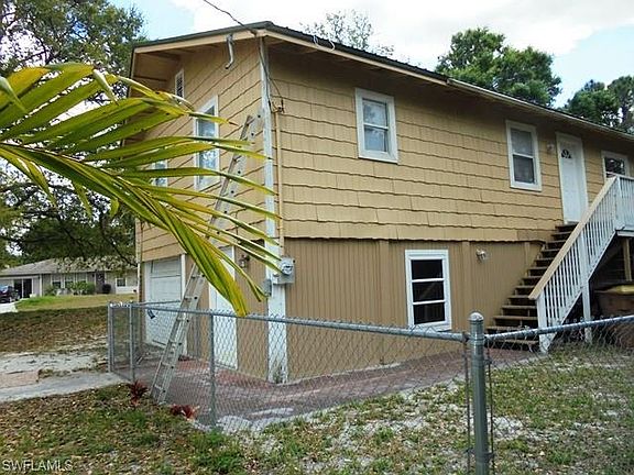 Corner lot, oaks,downstairs has large bedroom and bath. Up can be reached from here (stairs) Separate stairs on side of house going up, if needed Great privacy. Nice kitchen with dining/family. 3 bedrooms up are carpeted. Open balcony upstairs with nice view of woods. Fenced area .. small children and/or pets. Property goes beyond fence.