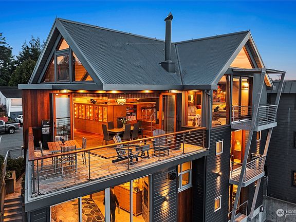 Prepare to be amazed. Majestic, AIA award winning residence, created by a recognized design leader in the Pacific NW, architect Philip Christofides. It is intricate, dramatic yet refined, this house packs a lot of space into 3 stories resembling nautical design for the spectacular location. Use of cast concrete, Brazilian cherry & metal siding on the exterior, rich Honduran mahogany used for trim throughout the house, as well as stainless steel details on railing & decks, makes this a rare low bank waterfront masterpiece on the ‘Venice Beach’ of Seattle. Open floor plan of the top level with 14-f ceiling, folding glass walls creates an intimate connection with nature and feels warm & comfortable. This house has it all.