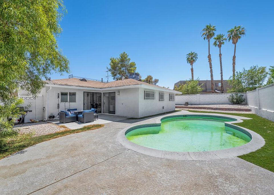Beautifully Updated & Fully Furnished Pool Home! This stylish 4-bedroom single-story rental home offers modern updates throughout and comes fully furnished for immediate move-in. The bright, open living area features sleek tile flooring, a contemporary fireplace, and designer finishes! The updated kitchen boasts crisp white cabinetry, quartz countertops, and all appliances. The primary suite offers private patio access, perfect for morning coffee or evening relaxation. Step outside to your own private retreat with a sparkling pool, sun deck, and low-maintenance landscaping ideal for entertaining or unwinding! Conveniently located near shopping, dining, entertainment, and freeway access.