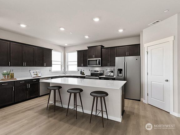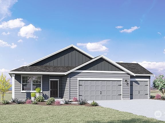Phase 7 Palomino - Picturesque large lots back to treelined creek with North facing rear yard with views of Mt Stuart and Cascades. The Lawson has single story living that everyone has asked for! Enclosed covered back porch with 3 CAR GARAGE! Front yard includes full landscape with irrigation. Gourmet kitchen features gas cooktop, stainless steel appliances, solid quartz counters & full height backsplash, soft close drawers with SS hardware, walk in pantry. Vaulted 9 foot ceilings and floor to ceiling accent wall for modern electric fireplace with mantel and outlets for TV. Primary suite w/ large walk in closet, double vanity and shower & soaking tub under a window!. Air Conditioning!