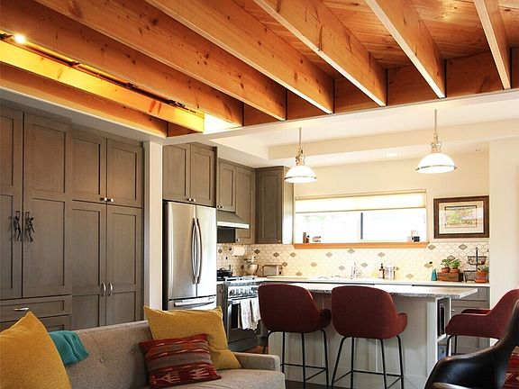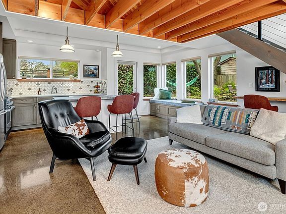Exciting offering! One-of-a-kind custom urban cabin with private garden lot in prized Madison Valley neighbrhd. Expertly designed by Seattle’s award-winning Bruce Parker/Microhouse Architects with lofted rooms, creative use of natural materials, exposed beams, strategic alignment of windows, and clever storage solutions for maximum light, style, & efficiency. Superb finishes & systems thru-out, dream kitch outfitted w/ professional-quality DCS range, hi-end wood cabinetry, pretty quartz counters & island, ASKO w/d. Open staircase leads to primary bedrm, bath w/ heated floors, office, view balcony in the trees. Mudroom for bikes & boots, storage shed, private yard, off-st parking, enduring siding, life-time roof. They thought of everything.