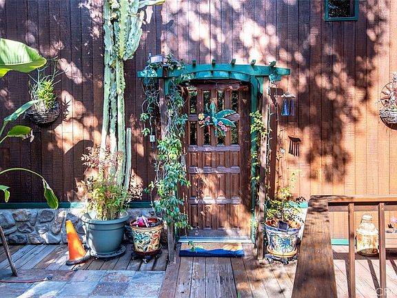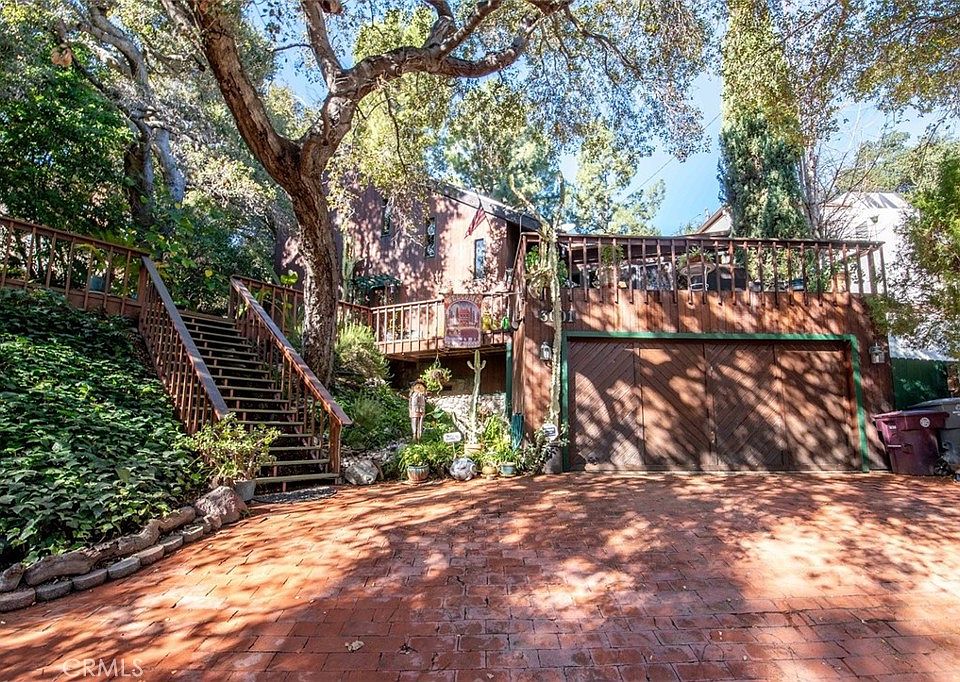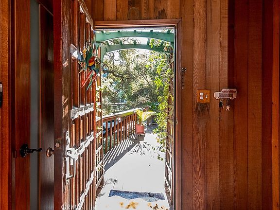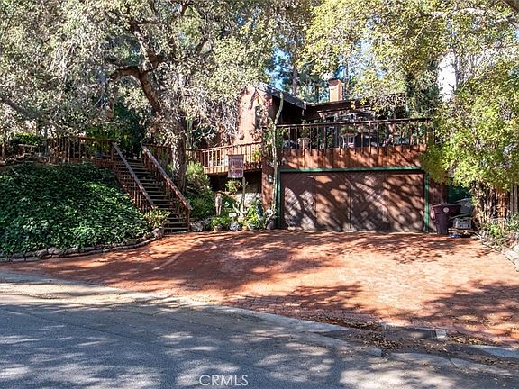 A very unique, wooden house located in much desired Chevy Chase Canyon. Built by a shipwright in 1972 who diligently designed a hillside retreat that happens to be located close to downtown LA and the beautiful Chevy Chase Country Club. From the brick driveway you see a masterpiece made of tongue and groove cedar planking which is carried on into the inside walls. The great room has soaring ceilings, redwood flooring and large fireplace made of ceilings cobblestones. The kitchen and bathrooms were remodeled seven years ago using high quality sinks, fixtures and granite countertops. The den is approximately 300 sq.ft., carpeted, two skylights and two beautiful stained glass windows, custom made wall cabinetry, and storefront doors going into great room. French doors go out to large front deck with mountain views and wonderful outdoor entertainment opportunities. The house has two large bedrooms upstairs with full bathroom in between (even the upstairs rooms have 20 ft. ceilings) and there is one smaller bedroom with attached full bathroom downstairs. The backyard has been landscaped with hardy native plants, watering system and lighting for peaceful views while dining in the sunroom. The house was repiped 15 years ago and included copper pipes, soft water system and later a tankless water heater. The last reroof was done in 2017. The heating/air conditioning unit was serviced and new ducting was installed. Although the a/c is as old as the house, it is a commercial grade unit operating at 80% efficiency. It is located in a 200 sq.ft. shop behind the garage. There are seven mature oak trees shading the 8,300+ sq.ft. lot.