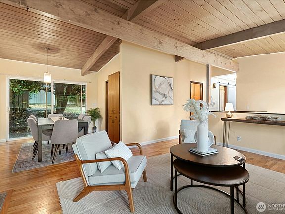 Discover this true mid-century Meadowbrook gem, perfectly situated near the community center, schools, parks, & transit. This home welcomes you with vaulted ceilings over a spacious living room featuring a cozy fireplace & a deck looking to the park across the street. Skylights add natural light, while refinished oak floors flow thruout the main floor. Enjoy a large dining rm & kitchen w/updated cabinets, appls & period tile counters. The main floor offers 3 bedrooms, including a primary w/ensuite. The fully finished basement boasts a 2nd kitchen, dining nook, bedroom, full bath, laundry rm & rec room—ideal for guests or multi-generational living. A large fenced yard with a covered patio makes outdoor play and entertaining a breeze!