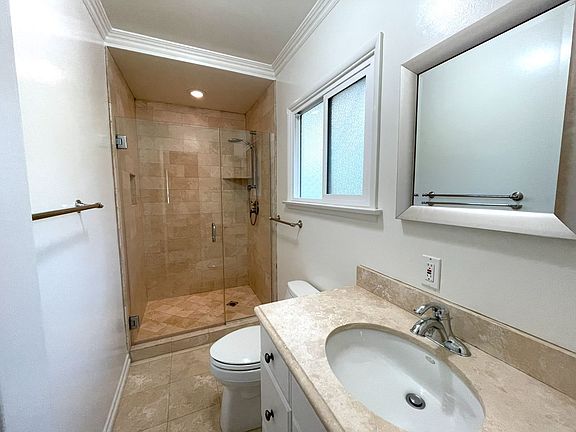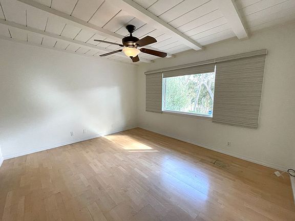 This updated 3 bedroom + bonus room home is loaded with amenities. You'll find hardwood floors throughout, updated kitchen and bathrooms, automatic window shades in several rooms and an a/c unit in the living area. The bonus room off the main entry with an attached bathroom is perfect for an office, playroom or 4th bedroom. The kitchen features granite counters, 5-burner gas range, dishwasher, courtesy refrigerator and courtesy countertop microwave. There's plenty of cabinet space and access to the garage as well as a separate door to the yard. The spacious living and dining area has a wood burning fireplace and is flooded with light through the wall of windows and doors to the lovely yard. Three bedrooms are in the rear of the house, all with ceiling fans and spacious closets. The primary bedroom has a large walk-in closet and bathroom with oversized shower and double sinks. Another bathroom is in the hall and has double sinks plus a tub/shower. The 2 car garage comes with a courtesy washer/dryer and has plenty of storage space. Ideally located across from the PV Golf Course and close to both Malaga Cove and Riviera Village, don't miss out on this one!