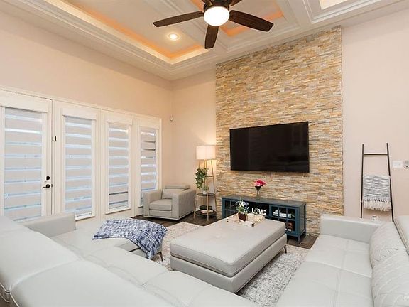 Stunning home! This home offers 3 bedrooms and 2.5 baths located in the exclusive gated community Sommerset Court Estates and zoned to Sharyland ISD. The open concept kitchen has beautiful white cabinets and a large kitchen island. The dining room and living room oversized windows are perfect to enjoy the exterior scenery. The master suite is very spacious and the bathroom has double vanity and a walk in closet. Through out the home, you will find gorgeous decorative molding and wood-like tile. The home is nestled at the end of the subdivision for some extra privacy. Call and schedule your appointment today.