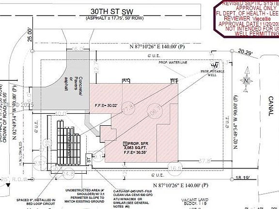 Build-ready lot with approved single-story home project in Lehigh Acres. Start building immediately! This ¼-acre corner lot includes full city-approved permits and architectural plans for a beautiful 3,086 sft of single-story residence featuring 3 bedrooms, 3 bathrooms, and a den that can serve as a home office or guest suite. Price only includes the lot, complete set of approved plans, and permits—ready for construction. The lot has been cleared and leveled with 55 truckloads of fill dirt, placed according to approved elevation plans. An electrical pole is already installed at the property line. The corner lot provides dual street access. Construction can begin immediately, A lender is ready to provide financing to complete the construction. Call for details. Owner motivated.