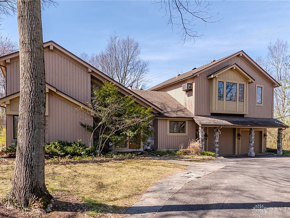 Large contemporary home west of Far Hills nestled on over an acre wooded lot. This home has nice space & wonderful sunset views. A large living room with vaulted ceilings & handsome fireplace and mantle feels like a private lodge oasis. There are possibly 4-5 bedrooms including two primary en suite bedrooms. The largest en suite also includes a walk-in closet room & private exercise area off the bedroom. The kitchen has been updated with warm wood cabinetry & SS appliances. This is an opportunity for the savvy buyer who is willing to give this spectacular home some TLC. Newer roof & HVAC. Location is a "10"!!