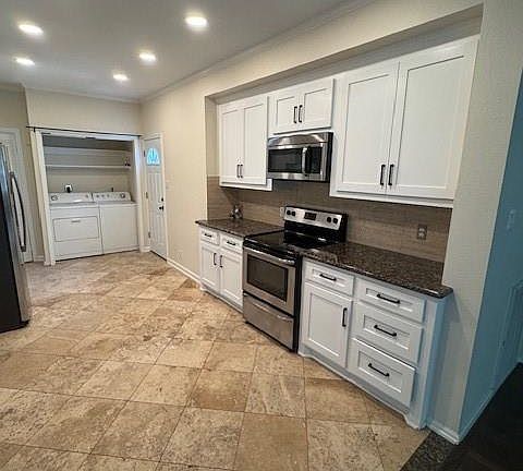 - Included: Dishwasher, Disposal, Dryer, Microwave, Oven, Refrigerator, Stove, Washer