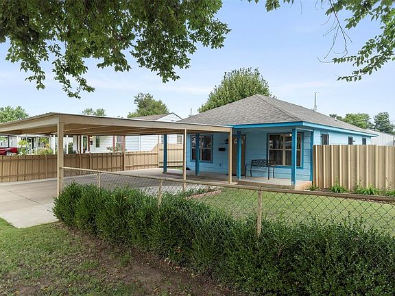 Fenced backyardWell-sized lotInviting front porchCozy layoutBright blue exteriorSpacious covered carport