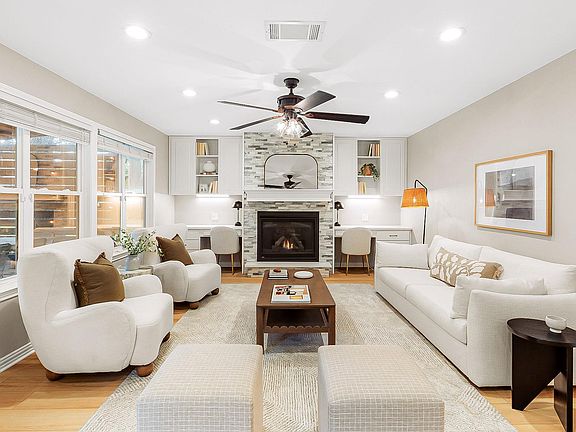 This beautifully refreshed home features newly installed flooring, multiple living spaces and an incredible backyard complete with an outdoor grilling oasis! Elegant white oak style flooring on the main level and staircase creates an inviting and updated space. The open-concept kitchen and living areas create a bright, inviting atmosphere perfect for both everyday living and entertaining. You’ll love the cozy fireplace surrounded by built-ins and desk areas! The beautifully updated kitchen showcases stylish finishes, ample counter space, stainless appliances, gas cooktop, double ovens and excellent cabinet storage. Additional bar seating at the island opens seamlessly to the living and dining areas. Fabulous layout! Upstairs, the renovated primary bathroom offers a spa-like retreat with contemporary upgrades including a frameless glass walk-in shower, double vanity, amazing built-in storage and closet space. Secondary bedrooms all have recent ceiling fans and great closet storage. Additional updates: all new plush carpet upstairs! Step outside to an extended covered patio with an amazing grilling and dining area — ideal for hosting friends or enjoying quiet evenings at home. The fully fenced backyard has been thoughtfully designed and maintained with custom landscaping, offering a private and tranquil setting to relax or entertain year round. Additional peace of mind comes with a new roof and HVAC system, both replaced in 2024. Amazing location with many nearby neighborhood parks, playgrounds, trail systems and dining options. With its modern updates, functional layout and inviting outdoor spaces you can move right in and start living!