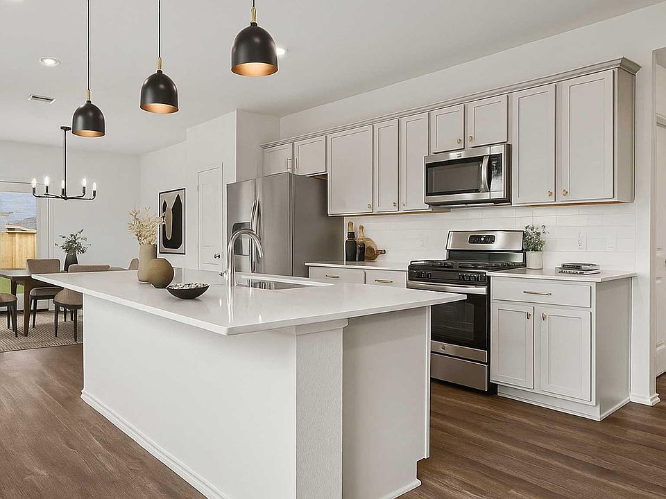 WONDERFUL BRAND NEW 1 STORY D.R. HORTON HOME IN THE AMAZING SUNTERRA COMMUNITY! Great curb appeal with landscape package! Modern interior features include quartz counter tops in kitchen with a single bowl farmhouse style sink, beautiful flooring, and stainless steel appliances by Whirlpool! Spacious primary bedroom with fantastic bathroom that features a separate tub and walk in shower! Wonderful floorplan! Also includes a tankless water heater by Rinnai and DuPure water filtration system! Lovely outdoor space with full sod and sprinkler system in the front & back yard! Sunterra is a master planned community with unbelievable amenities for the residents! Lazy river, pool lagoon, walking trails, and so much more! Hurry and call today!