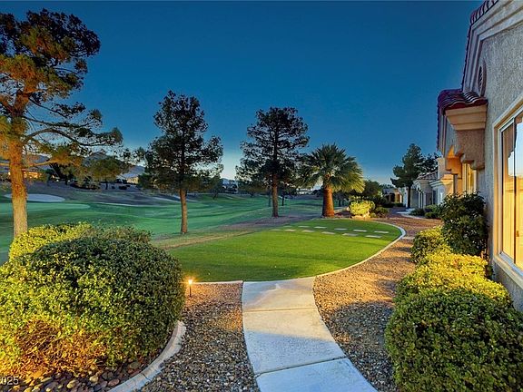 Beautiful 3-bed, 2-bath single-story home with an oversized 2-car garage in Sun City Summerlin. Light pours into most of the rooms here! At 2176 SF, it offers a formal dining room, large living room, family room, and a hobby room off the kitchen. Quality carpet and ceramic tile throughout enhance its charm. Overlooking the 9th green of Highland Falls Golf Course, the home features a spacious covered patio with stunning views. Located in an age-qualified community close to all services. Sun City Summerlin includes golf courses, club houses, restaurants, exercise and meeting rooms, plus a very active social calendar. Lovingly maintained by the original owner, who is open to assisting with buyer costs for the right offer.
