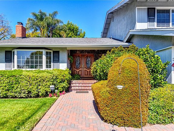 This beautifully cared-for split-level pool home is ideally located in the highly sought-after Sunny Hills neighborhood of Fullerton. Meticulously maintained with an eye for detail, this home offers a timeless and functional floorplan. Upon entry, you're greeted by a formal foyer and convenient half bath. The main level features a bright and inviting formal living room, complete with a marble-hearth fireplace, recessed lighting, and an expansive window that floods the space with natural light. Pocket doors lead to the generous formal dining room, featuring sliding glass doors that open directly to the backyard. The updated kitchen, remodeled in 2002 and enhanced with newer appliances from 2022 and 2023, is a delight. It boasts a central island, casual dining area, garden window, and custom cabinetry. Downstairs, a spacious den offers a second fireplace, built-in entertainment center, and access to the back patio through sliding glass doors. The lower level also includes a large, well-appointed laundry room with abundant storage and a convenient laundry chute. A good-sized downstairs bedroom is located adjacent to a three-quarter bath with exterior access—perfect for pool guests or multigenerational living. Upstairs, you'll find three additional bedrooms, including a large primary suite with dual closets, built-in storage, and a private en-suite bath. One of the secondary bedrooms features a custom-designed walk-in closet, created from what was originally a fifth bedroom. The outdoor spaces are simply stunning. The backyard is private and beautifully landscaped. The sparkling pool serves as the centerpiece, surrounded by multiple seating areas including a covered patio with gas & electric heaters and an open patio with a built-in gas firepit. Located in an award-winning school district and close to parks, shopping, and dining, this home offers the best of Sunny Hills living. With major systems thoughtfully updated and lovingly maintained, this is an exceptional property.