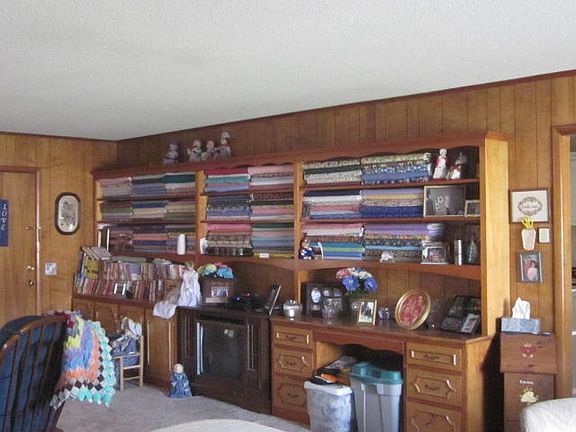 Brick 2 bedroom, 2 bath, oversized 2 car garage with finished basement. Has large living room with built-in bookcase, large utility room with sink, closet, and cabinets, kitchen with eating bar, pantry, and built-in microwave. Dining area with built-in hutch. Huge master bedroom has walk-in closet. Home sits on corner lot. Large covered back porch, 2 storage houses, covered 24'x30' RV parking.