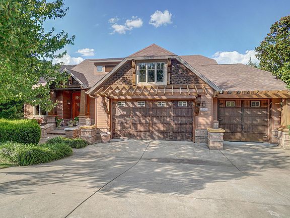Love to entertain? This stunning home is soon to be featured as Home of the Week in the Springfield Newsleader. Here is your chance to call it home! A view for miles, and you can walk out the back door and straight on to the course in Rivercut. Newly updated Arts and Crafts style home has so much character! Located on the 18th hole, this custom 1 owner home is a must see. Gracious front porch with extensive mature landscaping and water feature welcomes you. From the custom glass work in the front door to the lighting and features, this home features timeless style. Love to entertain? Big family? You have never seen a lower level like this! Private master suite is a soothing retreat, with an enormous 2 story master closet. Upstairs bedrooms feature clever hidden vanities. Kitchen has a lovely butlers pantry and great flow. Massive ground level great room with 20 foot ceilings. Freshly painted throughout, granite counters, hardwood flooring, and beautiful wood finishes throughout. Alder wood cabinetry in both kitchen and master suite. Both levels have a covered deck perfect for enjoying the amazing golf course view. extensive professional landscaping in the back gives a great balance of privacy and golf course access. LOVE PRIVACY? Wooded lot next door is available for separate purchase. Kickapoo schools! Neighborhood features walking trails, pool, golf , community area and easy access to many area attractions.