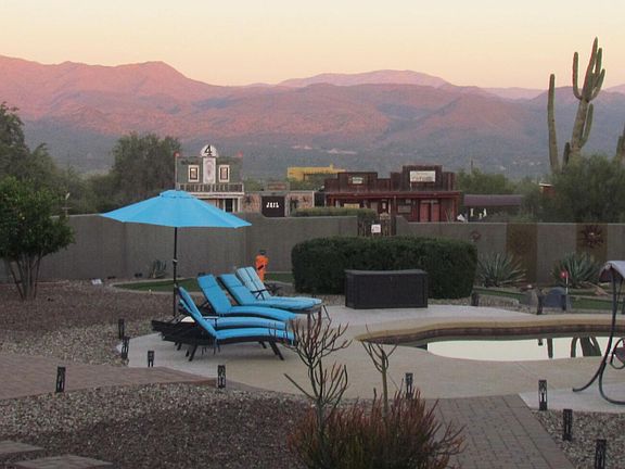Escape to your own slice of AZ paradise where panoramic mountain views greet you every morning and spectacular sunsets bid you goodnight. This stunning 4 bd, 3 1/2 bath home spans 3,200 sq. ft. of thoughtfully designed living space, but the real magic happens outside your door. Step into your backyard oasis where relaxation takes on new meaning. The sparkling pool features a dramatic rock waterfall that creates a soothing soundtrack for your daily swim or poolside lounging sessions. When the sun sets and the desert air cools, slip into the bubbling hot tub while gazing up at Arizona's star-filled skies. The built-in BBQ station, complete with a convenient refrigerator, makes outdoor entertaining effortless whether you're hosting a casual family gathering or a dinner party. For those who appreciate unique touches, you'll discover a delightful Western Town complete with workshop space and ample storage-perfect for hobbyists, craftspeople, or anyone who needs dedicated project space with character. The 4-hole putting course offers endless entertainment and practice opportunities right in your own backyard, making every day feel like a vacation. Horse enthusiasts will appreciate the thoughtful equestrian amenities, including a well-designed corral and tack shed that provide everything needed for proper horse care and equipment storage. This setup allows you to pursue your passion for horseback riding without leaving home. No horses, no problem. Lots of space to build your own pickleball court! As evening approaches, gather family and friends around the fire pit area where stories are shared, marshmallows are roasted, and memories are made. The outdoor space seamlessly blends entertainment areas with functional features, creating an environment where everyday feels special. The dining room has been converted to a fun 50's themed game room so the kids are going to love it too! The location offers the best of both worlds-peaceful desert living just 10 min. to Scottsdale. Just 1 mi. and you are on endless 4x4 or horseback riding trails throughout Tonto National Forest. Another 2 mi. and you can be fishing along the Rio Verde River at Needle Rock Recreational area. This property represents more than just a house-it's a lifestyle destination where outdoor living reaches new heights. From the mountain vistas to the entertainment features that transform your backyard into a resort experience, every element has been designed to enhance your quality of life. Whether you're seeking a peaceful retirement haven, a unique family home, or an entertainer's dream property, this residence delivers an unmatched combination of natural beauty, practical amenities, and pure fun. Your Arizona adventure begins here, where every day offers new opportunities to enjoy the spectacular outdoor lifestyle that makes desert living so appealing.