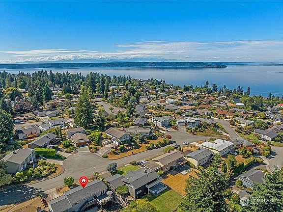 Discover the charm of this exceptional home in the sought-after Mar Cheri development W/stunning Sound views! Sleek bamboo & laminate flooring throughout. Main level inc. cozy living rm W/wood FP & VIEWS of the sound! The kitchen is a culinary delight ft. farmhouse sink, SS apps, & elegant granite counters/backsplash! Updated full bath on main. Lower-level W/versatile bonus area ft. gas/electric FP. 4 bdrms inc. 2 primaries! One on main W/¾ bath & 1 HUGE primary on lower-level ft. spacious WIC & custom-tiled bath W/jacuzzi tub. Step outside to a large deck that extends your living space into the outdoors & patio space with bonfire pit. Furnace rep. in 2023. Take advantage of the community clubhouse & pool for relaxation & social gatherings.