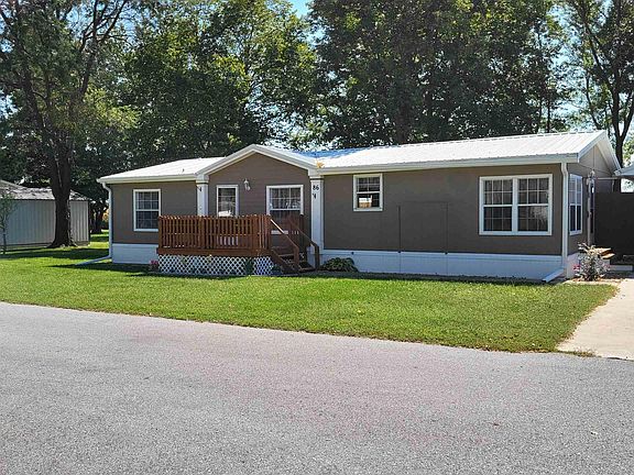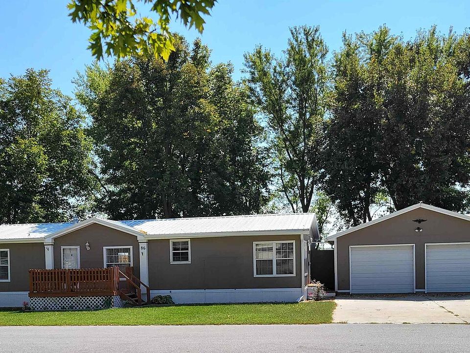 Charming 3-Bedroom Home on Owned Lot with Detached Garage & Shaded Backyard! Don't miss this move-in ready 3 bedroom, 2 bathroom home, perfectly situated on its own owned lot—no lot rent here! This well-maintained property features an open concept layout that seamlessly connects the living room, dining area, and kitchen, creating a bright and inviting space that's perfect for entertaining or everyday living. The spacious master suite includes its own private bathroom, offering a peaceful retreat. Two additional bedrooms and a second full bath provide plenty of room for family, guests, or a home office. Step outside and enjoy the beautiful backyard, surrounded by mature trees that provide ample shade and privacy—ideal for relaxing, gardening, or enjoying outdoor meals. Other highlights include: Detached 2-car garage with extra storage space Steel roof for long-lasting durability and low maintenance All kitchen appliances included, making your move even easier This home offers the perfect blend of comfort, functionality, and outdoor charm. Schedule your private showing today and make it yours!