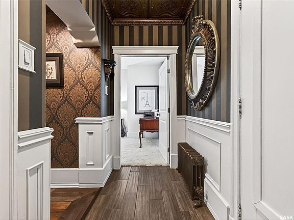 Rare opportunity to own a prestigious heritage residence! Elegant 1920 character property sits behind a grand circular driveway and has been professionally repainted highlighting its architecture. A spacious foyer welcomes you with designer finishes & updated ceramic tile. Main floor offers a versatile guest room/home office, fully renovated & wheelchair-accessible 4-pc bath with steam shower, and warm family room with slate feature wall and built-ins. French doors lead to a den/office overlooking the private backyard. Expansive living room showcases original hardwood, a decorative fireplace with marble surround, and crown moulding. Bright sunroom provides direct access to the deck and yard. South-facing windows illuminate the dining area, while original lead glass windows throughout the home add unmatched character. Chef’s kitchen features antique cream cabinetry, granite counters, high-end appliances (Thermador, KitchenAid, Miele, Blue Star), a commercial-grade hood fan, hot water tap, and garden doors to the south-facing deck. A butler’s pantry, main-floor laundry, and charming 2-pc bath complete the level. Upstairs 4 bedrooms feature Douglas fir floors. The renovated 4-pc bath includes a jet tub and walk-through to a dressing room. The spacious primary suite offers excellent closet space and abundant natural light. Basement is open for future development, with rough-in plumbing and a workshop area. Pool equipment is conveniently located in the basement; pool liner, pump, and filter recently updated. Boiler installed in 2020; 100-amp service plus newer subpanel. Private backyard retreat features an 8-ft fence, paver patio, low-maintenance landscaping, and a 14’ x 28’ inground heated pool with 8-ft deep end. Single attached garage with power door; potential for an additional single garage. A truly distinguished property blending heritage charm, modern luxury, and exceptional outdoor living. Perfect for buyers seeking history, elegance, and an unforgettable home.