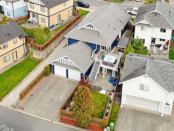 Fabulous family home—over 2800sqft of custom design, space, and comfort.The main floor offers a roomy kitchen with granite counters, ss appliances, and an island with seating for six—ideal for family meals and entertaining.The dining area opens on to a deck with hot tub, built-in BBQ area, and views of the backyard steps below.The primary suite features a fireplace, walk-in closet, and ensuite.The second bedroom has been transformed to a bright home office with its own entrance—perfect for remote work or simply turn back in to a bedroom.A full bath and laundry room leading to the garage complete the main level.Downstairs has two more bedrooms, full bathroom, storage, flex space/gym, and a large rec room with separate entrance opening to the private covered patio and back yard.Double garage located off a quiet rear lane with an oversized driveway for plenty of parking.Built Green with Geo-Exchange system.Walk to YMCA, Langford Lake, parks, schools, and recreation!