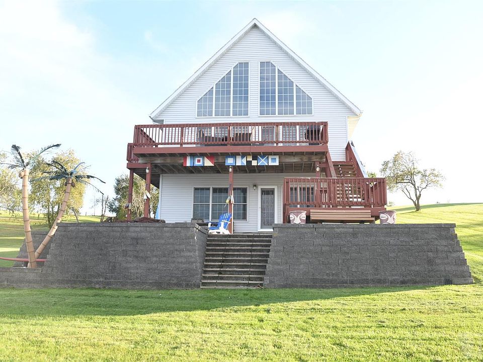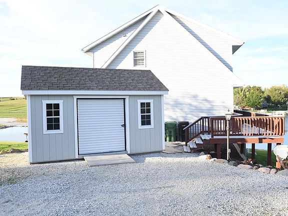 This beautiful lake home is located on Sun Valley Lake, a spring fed lake with prestine water, located near Ellston, Iowa. It is on the west end of the lake in a very peaceful and quiet area. The detail of this home is spectacular! The main floor is an open concept area with vaulted ceilings, and includes a large kitchen with copper colored back splash, granite countertops, and a custom inlay floor. The living area has a breath taking view of the water with slider doors that exit to a large deck. All new hard wood flooring throughout the main level. One of the three bedrooms is located off the main living area and includes a large walk in closet. The loft has space for two large beds and has a beautiful bathroom that features custom marbled mosiac tile and a large walk in closet.