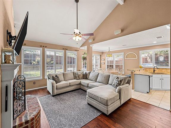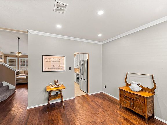 Charming corner lot. This home is highlighted by wood floors, decorator lighting and plantation shutters. The downstairs includes a flex space just off the entry that is perfect as a formal dining room, office or cozy den. Stepping in you will find a good sized family room with a charming brick fireplace and floor to ceiling windows that let in a lot of natural light. Kitchen has gas stove, granite and lots of space for cooking in the heart of the home. The kitchen features granite counters, pretty back splash, lots of white cabinets, SS appliance and a large breakfast nook. Upstairs you will find 2 more bedrooms and a nice sized game room with a perfect place to create gaming or office or study area.