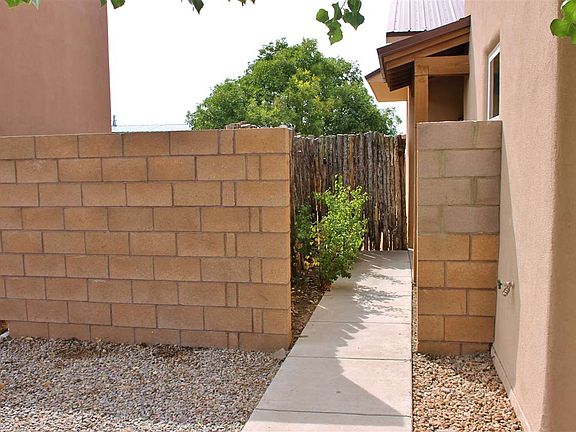 Charming Northern New Mexico Style home in a great location, close to shopping, parks, restaurants and Santa Fe Businesses. This home is ready to move in..new carpet, fresh paint through out. The kitchen has stainless appliances and solid surface counter tops...floors are stained concrete. Sliding glass door leads to a large back yard and a covered patio...great for grilling and spending outdoor time. This home has been built with energy efficient hvac system. There is lots of value in this 3 bedroom home on a corner lot with back yard access. No HOA fees here, yet neighborhood is kept up nicely! Come see this charming home!