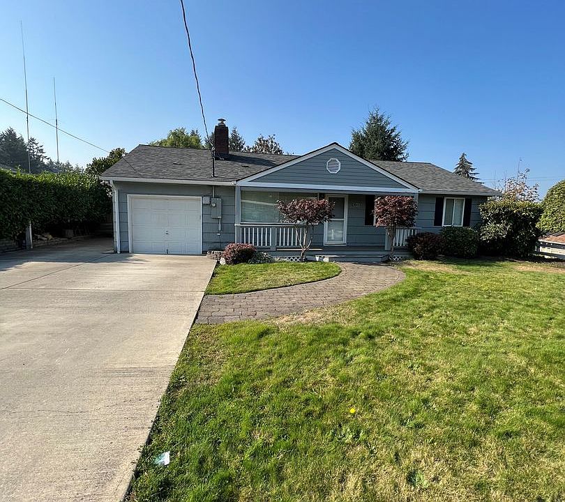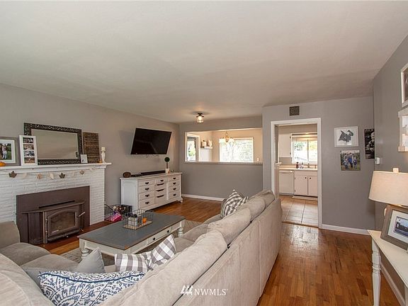 Cape cod style 3 bedroom, 1 & 3/4 bathroom rambler in the heart of University Place! Private driveway leads to the one car garage, adorable front porch and beautifully manicured front yard. The living room has a cozy wood burning fireplace that peeks through to the bright kitchen and dining area. All hardwoods just refinished!