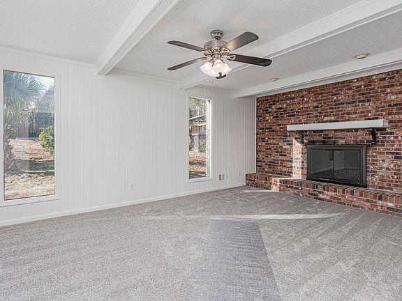 House has seen significant upgrades in the last 4 years. New windows to Tempered Glass, new HVAC Gas Pak, new Water Heater, New water lines, new HVAC ductwork. All bathrooms have new tubs, toilets, and vanities. 2024 upgrades include new white kitchen cabinets, new Luxury Vinyl Plank flooring in high trafficked areas and dining room. New carpet in 2 bedrooms, den, and living room. Newly painted interior and exterior. Kitchen has granite countertops and stainless steel appliances.