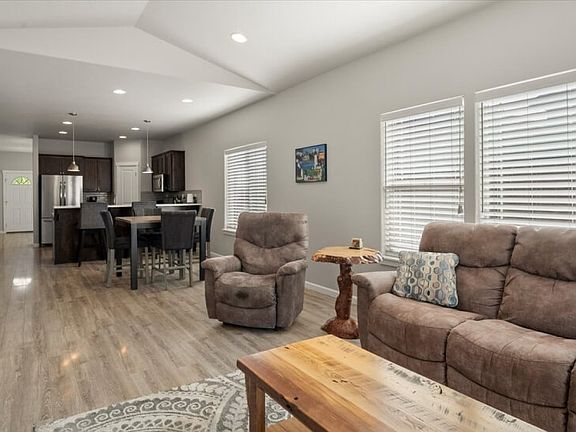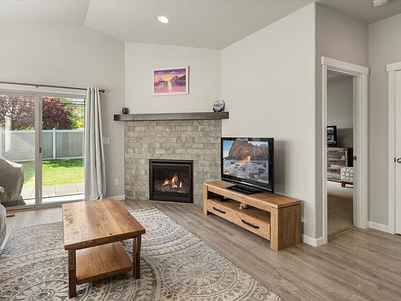 At 1,662 square feet, the home offers an open-concept floor plan that blends the living room, dining area, and kitchen, making it easy to stay connected and relaxed. A warm, cozy fireplace adds a comforting touch to the living space, while the kitchen features modern appliances, bar counter seating, and plenty of room to prepare meals or work remotely.