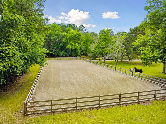 Nestled on 81+ acres of lush land on Johns Island, this premiere equestrian estate is a dream come true for horse enthusiasts. Boasting two homes, two renovated barns, a lit dressage ring, 5 pastures, and acres of undeveloped land, this property offers the ultimate equestrian experience with limitless potential. As you enter the gated front entrance, secured by an electronic gate, an avenue of majestic oaks leads you into the property, giving you a sense of peace and tranquility. You'll feel like you're in the country, yet you're just five minutes away from Johns Island executive airport, and fifteen minutes from Kiawah Island or historic downtown Charleston. The property features five pastures, all seeded and rotated, allowing for up to six horses. The professionally leveled and lighted standard-size dressage ring is perfect for riding day or night, which is of special importance during the warm summer months. With mature trees (including live oaks, magnolias, pines and a fragrant camphor tree) and a two-acre freshwater stocked pond, this wildlife sanctuary is a haven for wild turkey, deer, mallards, blue heron, and more. The log-cabin main house features a flowing floor plan with four bedrooms, two bathrooms, and a fenced backyard. Large windows offer stunning views of the pond and lush pastures, so you can catch a glimpse of wildlife or keep an eye on your horses grazing in the field. Close to the main house is the larger of the property's two barns. The existing cinder block barn was completely gutted and converted by the current owners into a six-stall barn with oversized stables, SoftStall flooring, heating and air conditioning, a tack room, feed room, tool room, bathroom, hot/cold water washing station, and woodworking shop in the back. The fully renovated guest house, with two bedrooms, two bathrooms, full kitchen, living room, and fenced backyard, is ideal for guests, a trainer, or a caretaker. The adjoining four-stall barn is located just outside of the guest house and features a separate feed room, half bathroom, and tack room. The current owners have done extensive improvements to the property, including installing two new pastures, substantial tree work, extending the dressage ring to make it a standard size ring, completely upfitting the six-stall barn, and adding generators at both houses, among other updates. This equestrian estate is truly a one-of-a-kind property, offering a serene setting, a wildlife sanctuary, and all the features necessary for the equestrian lover, while still being close to the city.