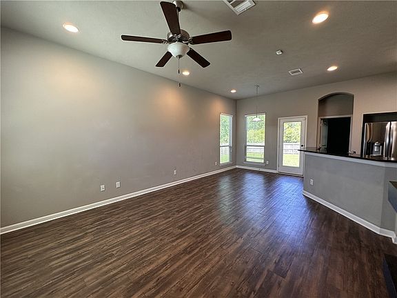Beautiful home on large lot with no homes behind for more privacy in desirable and centrally located Siena subdivision close to Rudder High School and convenient to shopping and restaurants. Functional open concept split floorplan featuring high ceilings, eating bar, granite countertops, laminate flooring and gas stove. The backyard is oversized with privacy fencing ready for gardening, entertaining and other recreational activities. Master suite has a garden tub and walk in closet and a raised ceiling, all bedrooms have ceiling fans. An inground sprinkler system has been added for easy lawn and garden maintenance. An outdoor landscape lighting system installed consisting of 5 tree lights and 5 path lights that illuminate the home's exterior at night. Siena has 2 community pools, playgrounds, walking trails, basketball court, picnic areas and a pond for fishing.
